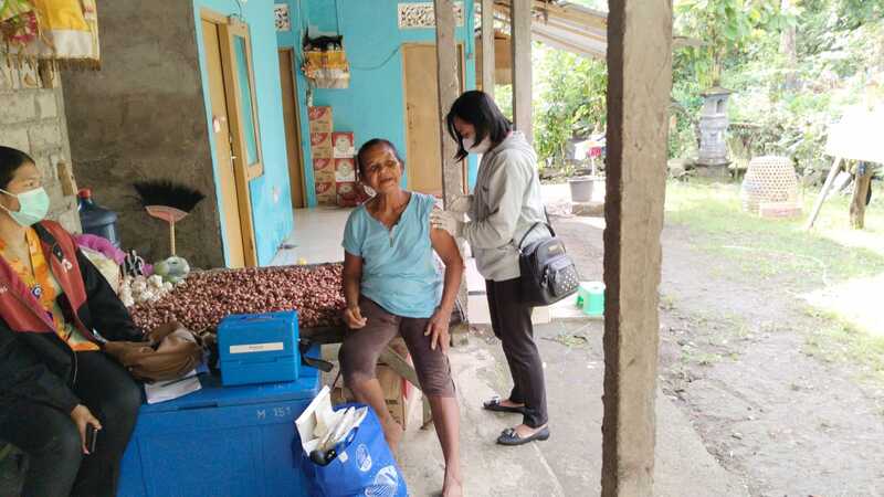 Di Banjar Pangkung Medahan, Petugas Kesehatan dari Puskesmas Kecamatan Pekutatan ( Dewa Ayu Dharma Prawerti) dan Petugas Kesehatan dari Puskemas Pembantu Desa Pulukan ( Gusti Ayu Nita Rastiti dan Adhe Desiyanti ) sedang melaksanakan program vaksinasi booster ke-2 untuk lansia (17/1/2023). Program ini merupakan upaya untuk meningkatkan tingkat imunitas masyarakat lansia yang lebih rentan terhadap infeksi virus COVID-19.