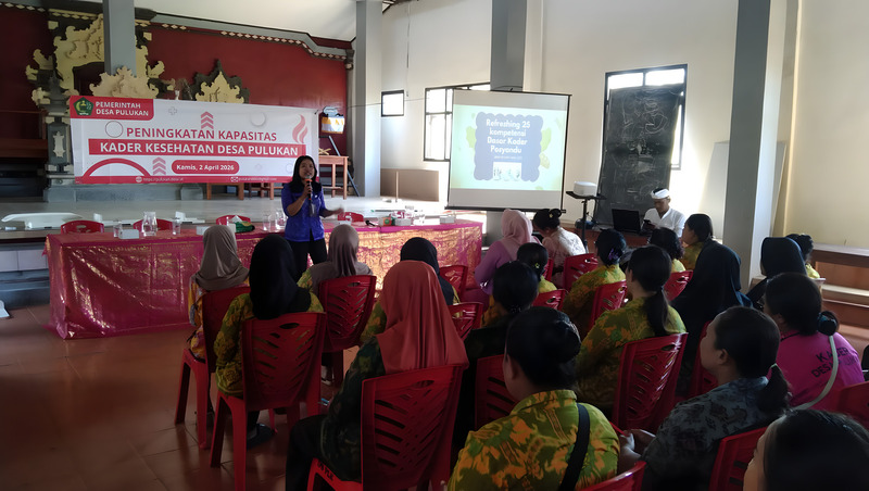 Pulukan, 2 April 2026 – Kegiatan Peningkatan Kapasitas Kader Kesehatan Desa Pulukan resmi dibuka oleh Perbekel Pulukan, I Wayan Armawa, bertempat di Gedung PAUD Desa Pulukan. Dalam sambutannya, Perbekel menyampaikan harapan besar agar para kader kesehatan semakin terampil dalam memantau tumbuh kembang balita, mampu melakukan deteksi dini kasus stunting dan gizi kurang, serta aktif menerapkan enam Standar Pelayanan Minimal (SPM) Posyandu Era Baru. “Kader adalah ujung tombak kesehatan desa. Saya berharap setelah pelatihan ini, kader bisa mengisi KMS dengan benar, memberi edukasi ke ibu-ibu, dan tidak ragu melakukan kunjungan rumah bagi balita yang tidak datang ke Posyandu,” ujar I Wayan Armawa.